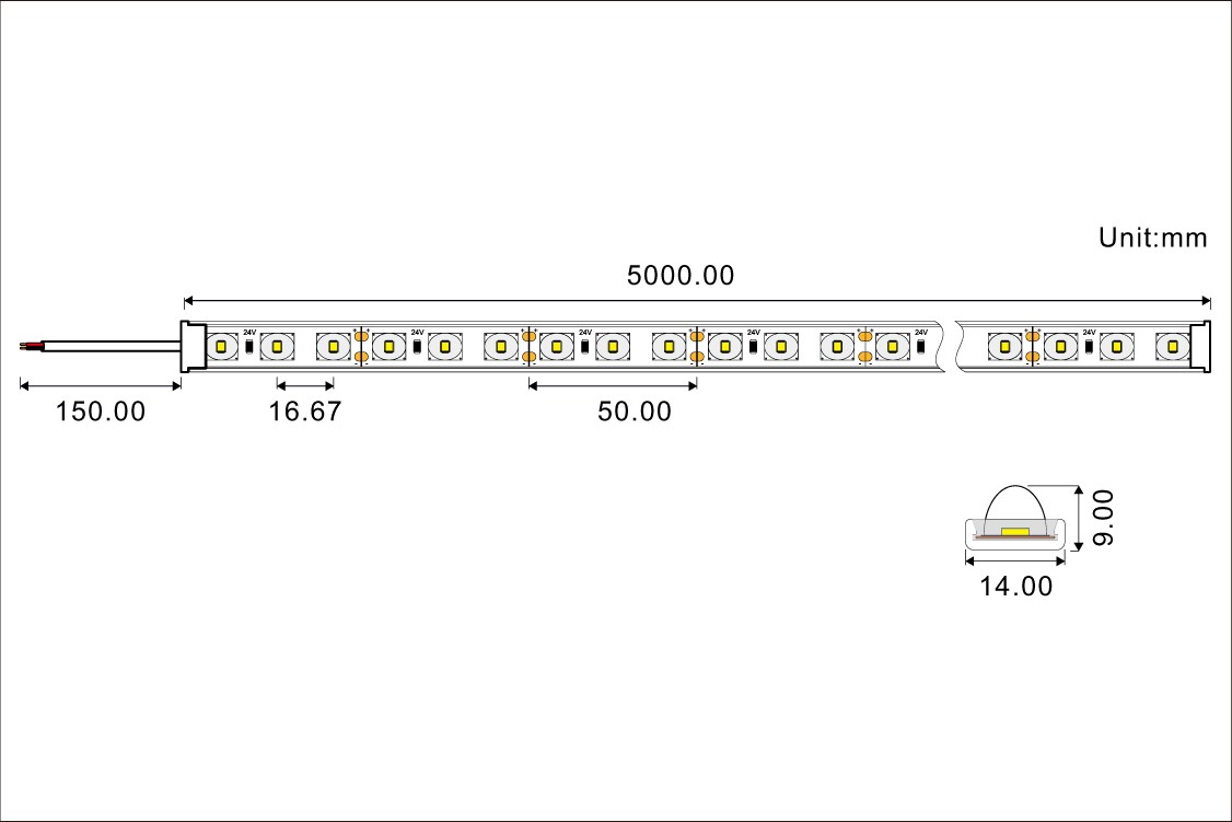 * The heat sinking measures must be taken if the electrical power more than 16W/m.