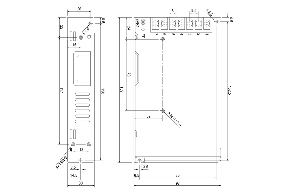 * Voltage Range : 85-132VAC/170-264VAC by switch