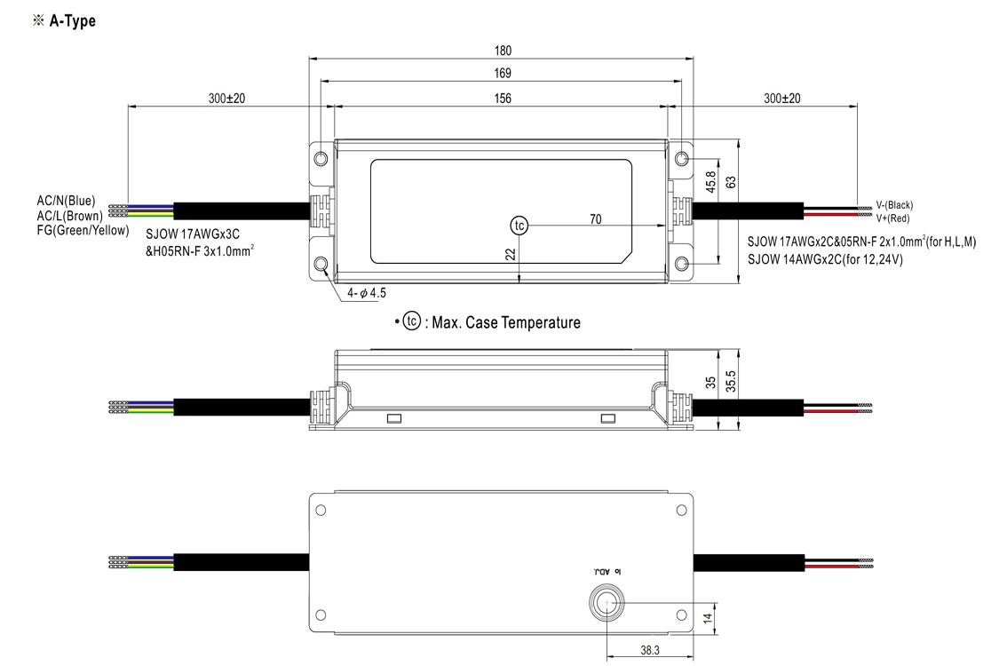 * AC Current (Typ.) : 1.8A/115VAC ; 1.0A/230VAC ; 0.8A/227VAC