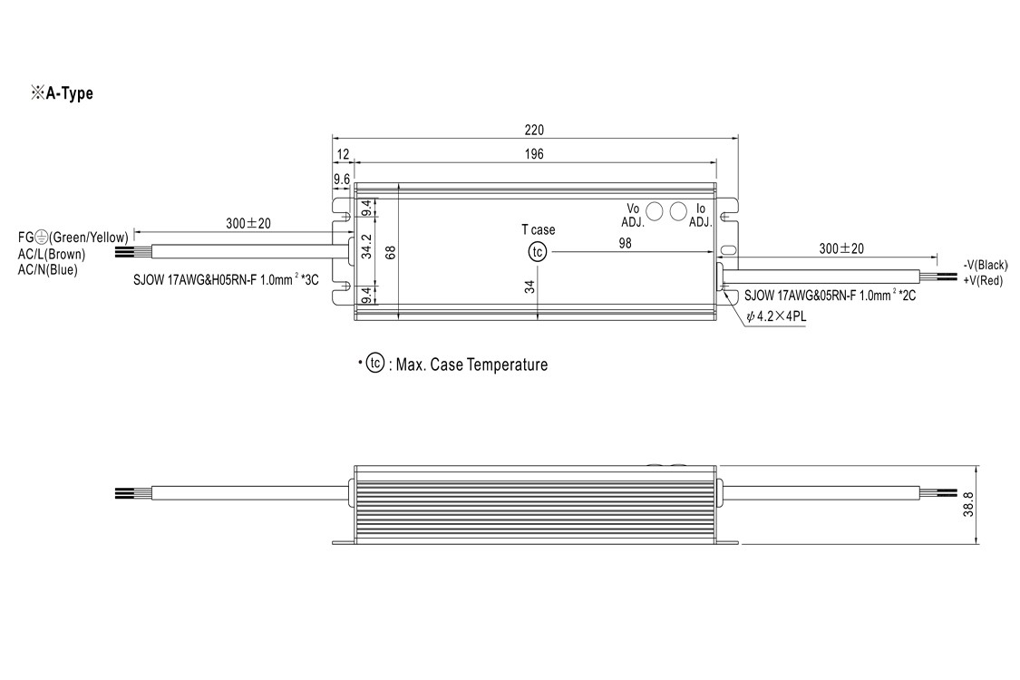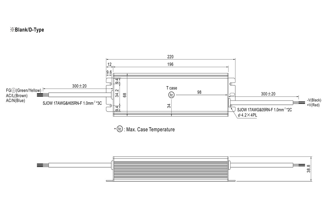 * AC Current (Typ.) : 1.2A/115VAC ; 0.55A/230VAC